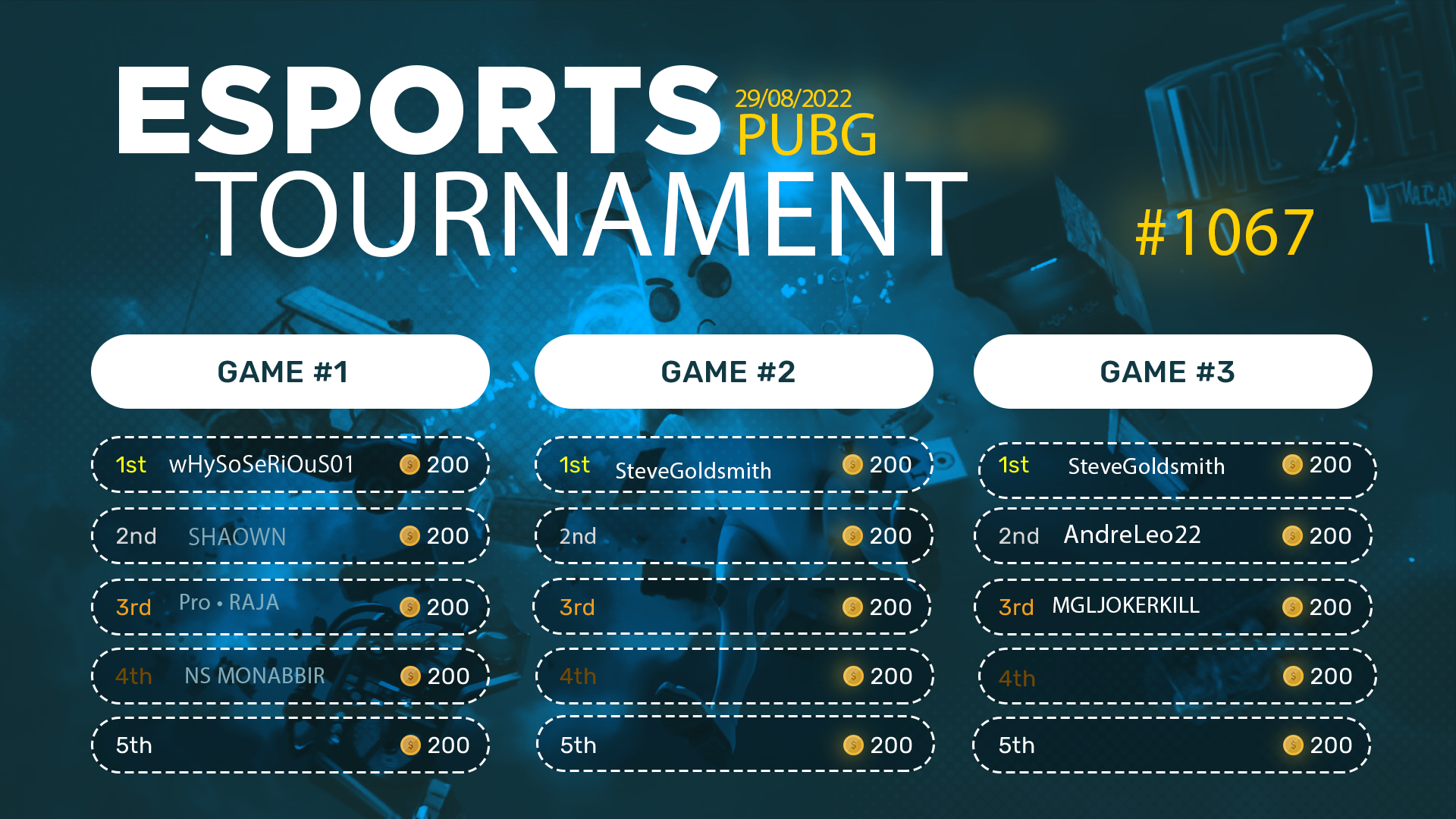 Esports Tournament #1067- PUBG Mob- 29/08/2022