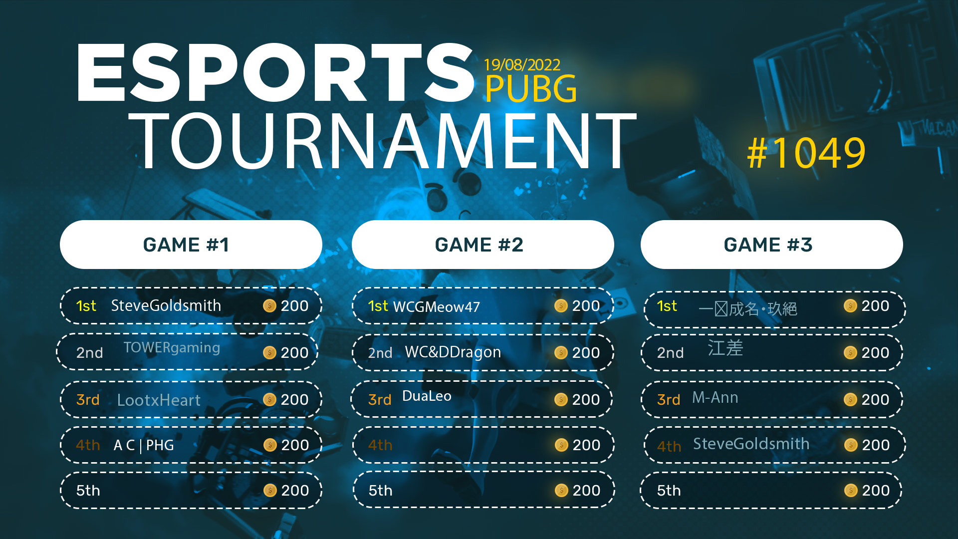 Esports Tournament #1049- PUBG Mob- 19/08/2022